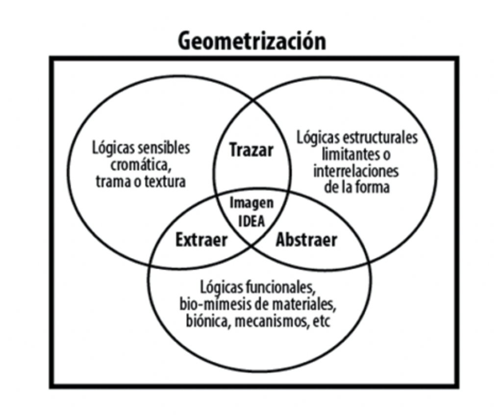 Las lógicas naturales de la forma muestran su infinita e inherente presencia en cada partícula del universo. La propuesta plantea al análisis de trazos, líneas y coincidencias geométricas como una herramienta metodológica que posibilita una comprensión de la estructura más profunda y sensible del referente conceptual (imagen), para operar desde su esencia compositiva (el módulo) y desde este lugar descifrar nuevas configuraciones formales, conservando el concepto y generando así rupturas (innovación), en el proceso de concreción; la creación.
