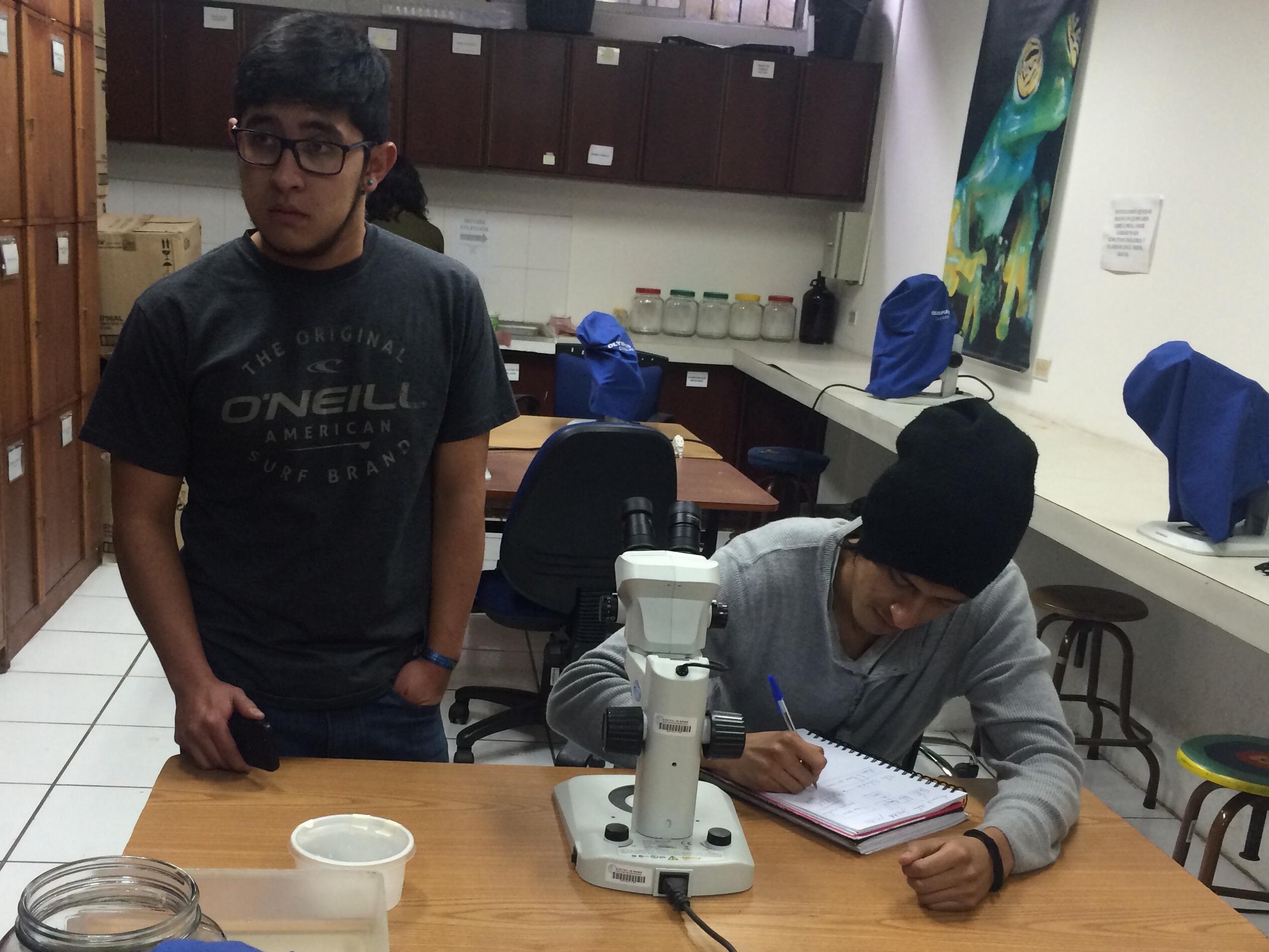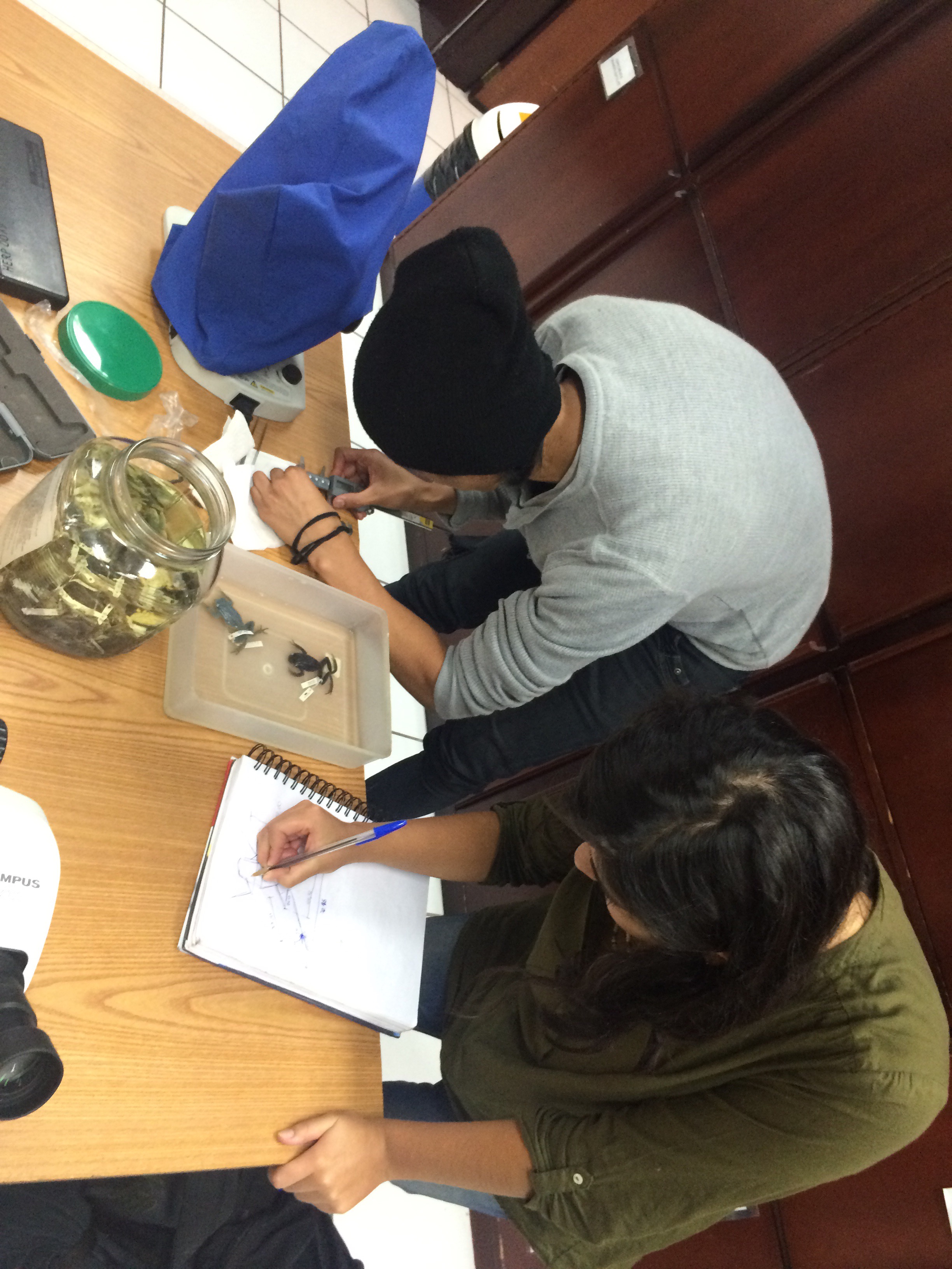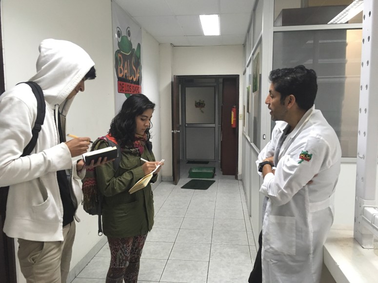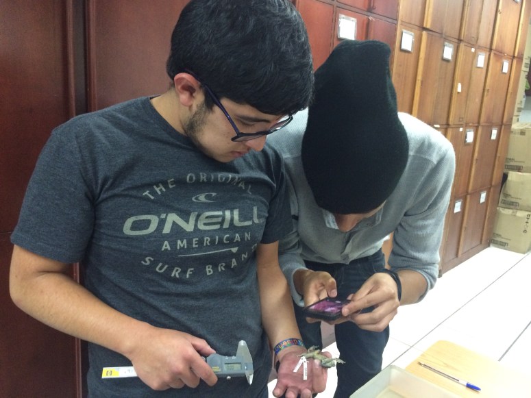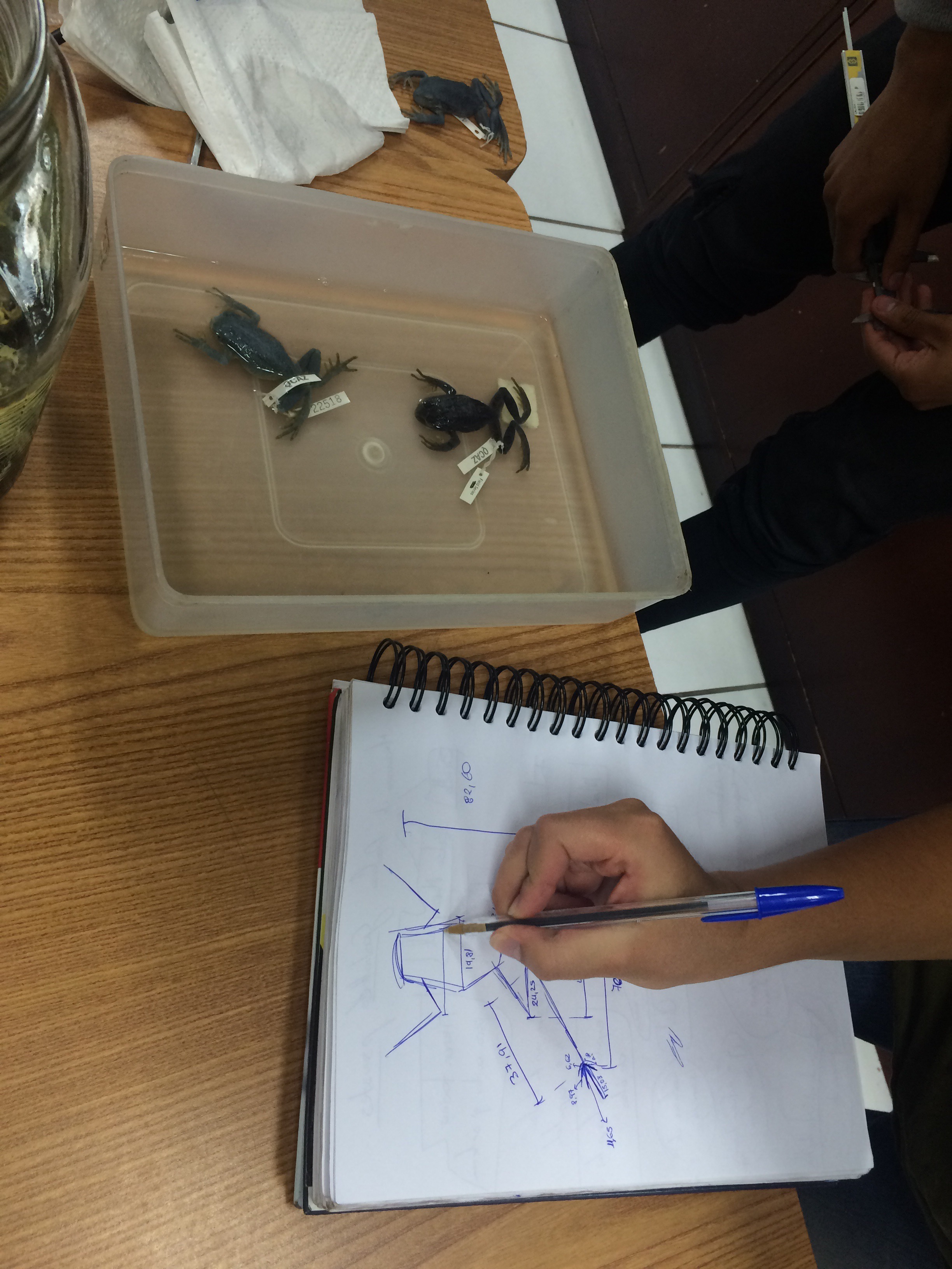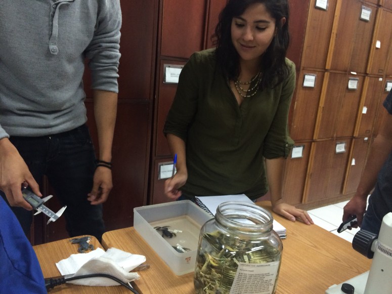 Estudiantes de Diseño de Productos de la Facultad de Arquitectura, Diseño y Artes, visitan el laboratorio de la colección de anfibios y reptiles de la Facultad de Biología de la Pontificia Universidad Católica del Ecuador; con el objetivo de observar un ejemplar en distintos momentos y estados; además de recolectar datos, dimensiones / proporciones / percepciones y entrevistar a los expertos en el tema. Este ejercicio, es el primero de un proyecto de la clase de Biónica que plantea descifrar una lógica morfogenerativa tecnológica y desarrollar a partir de ésta un producto de diseño objetual.