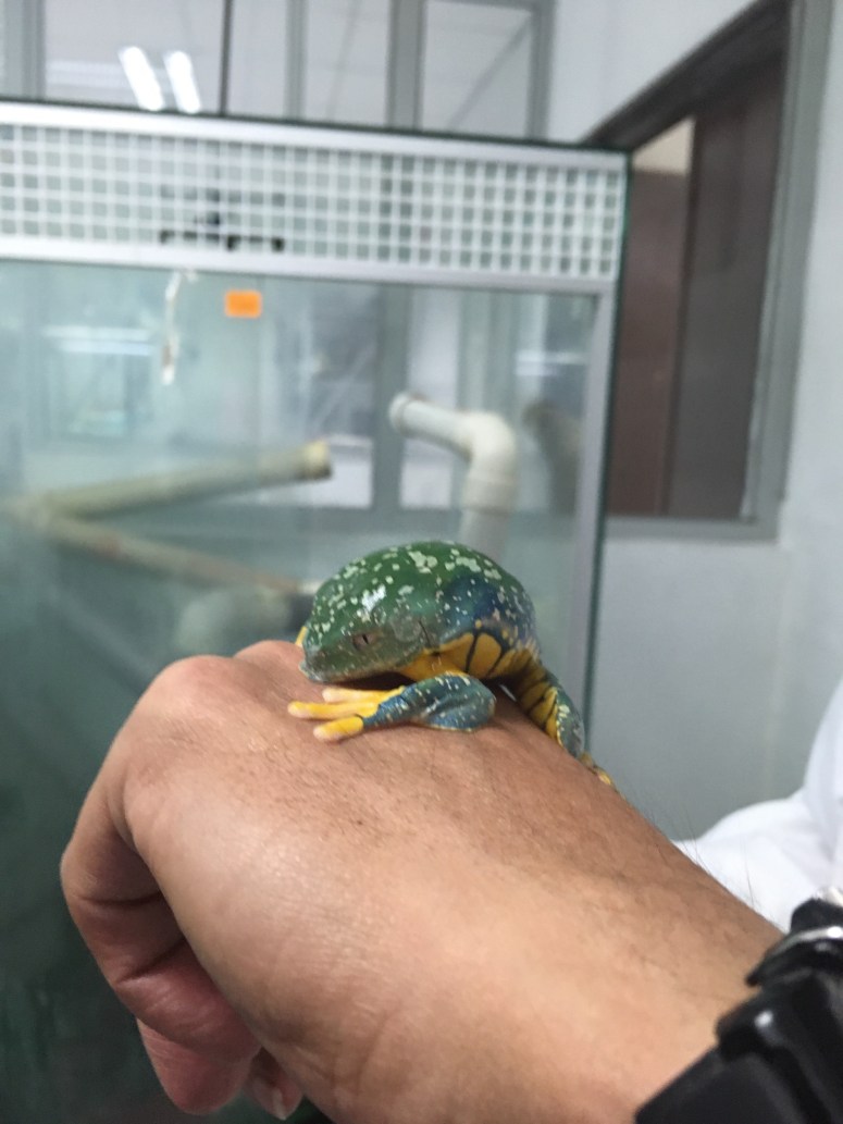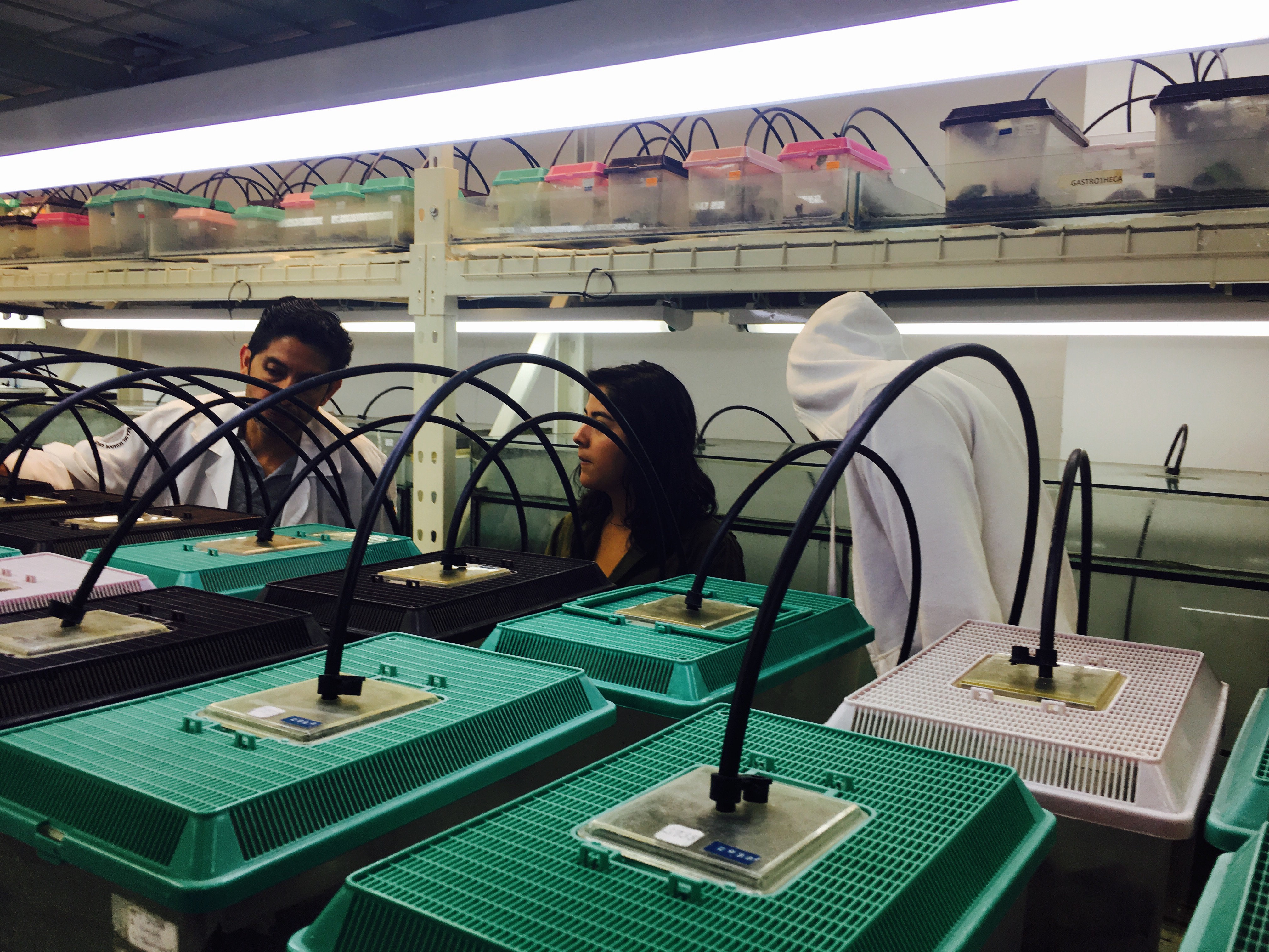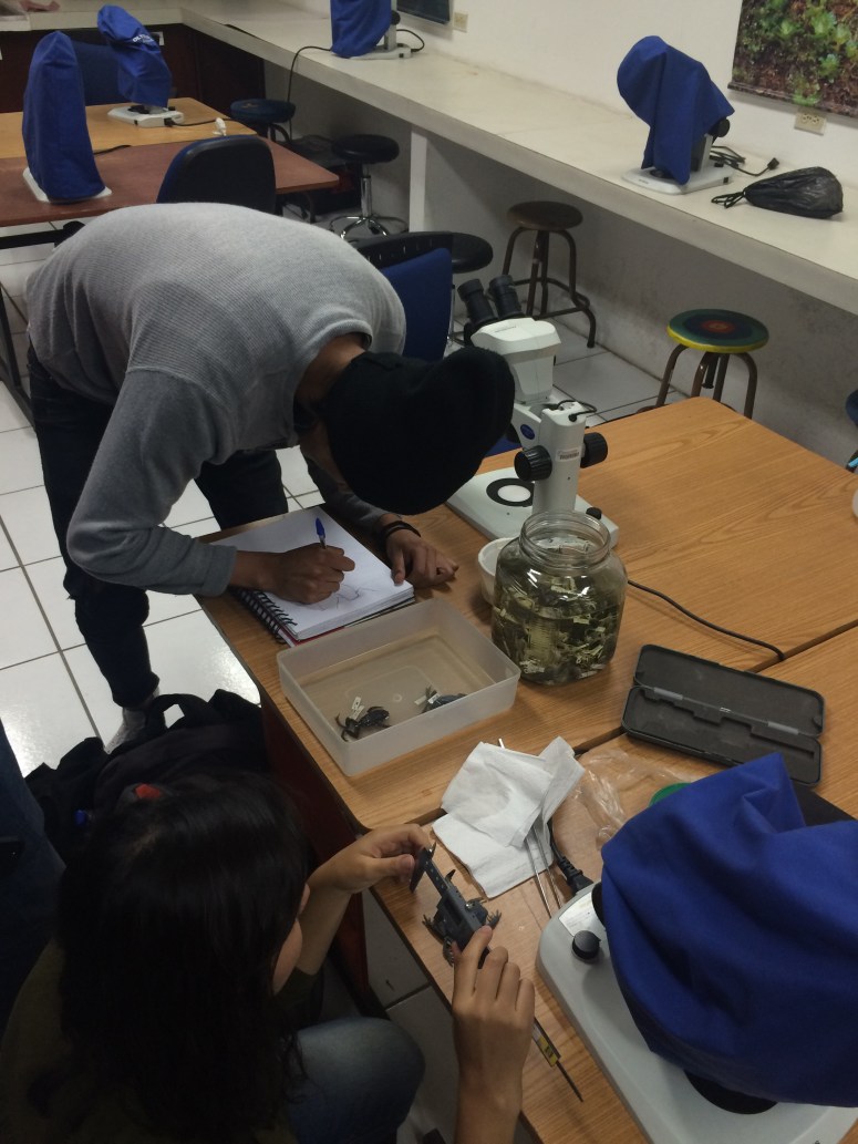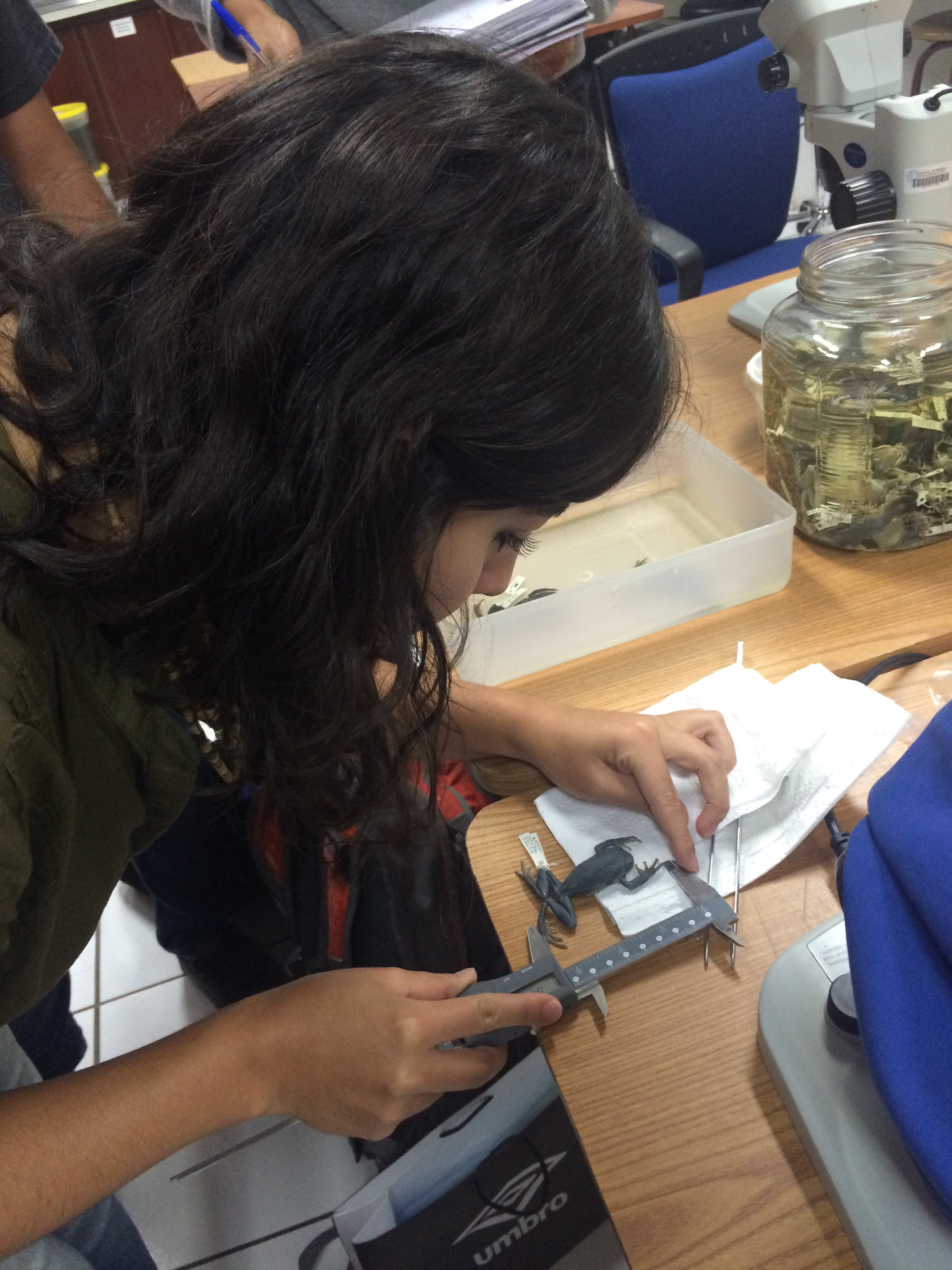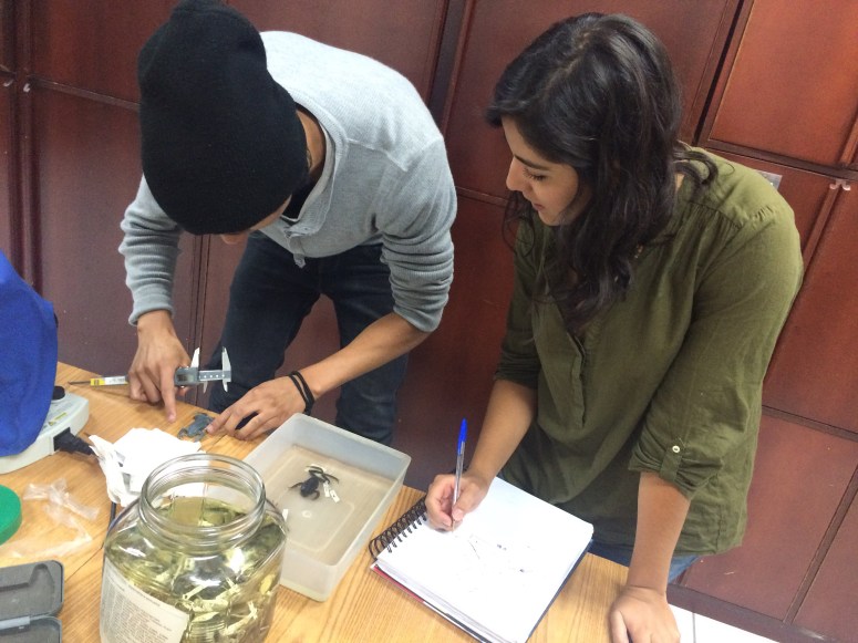Estudiantes de Diseño de Productos de la Facultad de Arquitectura, Diseño y Artes, visitan el laboratorio de la colección de anfibios y reptiles de la Facultad de Biología de la Pontificia Universidad Católica del Ecuador; con el objetivo de observar un ejemplar en distintos momentos y estados; además de recolectar datos, dimensiones / proporciones / percepciones y entrevistar a los expertos en el tema. Este ejercicio, es el primero de un proyecto de la clase de Biónica que plantea descifrar una lógica morfogenerativa tecnológica y desarrollar a partir de ésta un producto de diseño objetual.